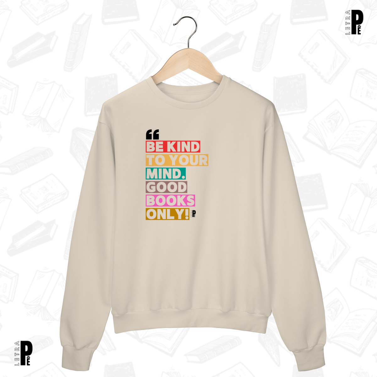 Be kind to your mind, good books only reforça a ideia de autocuidado por meio da leitura. Esta descrição apresenta uma peça ideal para quem busca camisetas e moletons literárias, moda para leitores e produtos inspirados em livros. O design destaca a importância de cuidar da mente, criando uma conexão direta com o universo da leitura, da criatividade e do bem estar. O moletom se torna uma escolha para quem deseja expressar estilo, paixão por livros e personalidade. Perfeito para leitores assíduos, estudantes, professores e apaixonados por literatura que procuram presentes temáticos, moda literária e acessórios relacionados ao hábito de ler. Uma opção versátil para compor looks casuais, divulgar o amor pelos livros e fortalecer a identidade de quem acredita no poder da leitura como prática de cuidado diário.