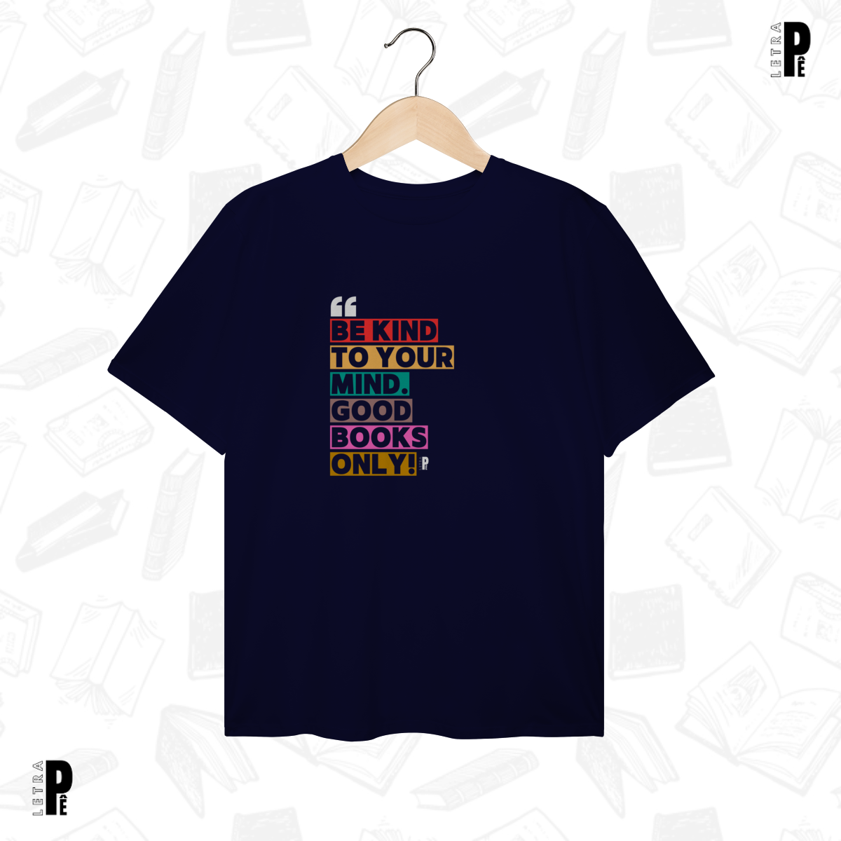 Be kind to your mind, good books only reforça a ideia de autocuidado por meio da leitura. Esta descrição apresenta uma peça ideal para quem busca camisetas literárias, moda para leitores e produtos inspirados em livros. O design destaca a importância de cuidar da mente, criando uma conexão direta com o universo da leitura, da criatividade e do bem estar. A camiseta se torna uma escolha para quem deseja expressar estilo, paixão por livros e personalidade. Perfeita para leitores assíduos, estudantes, professores e apaixonados por literatura que procuram presentes temáticos, moda literária e acessórios relacionados ao hábito de ler. Uma opção versátil para compor looks casuais, divulgar o amor pelos livros e fortalecer a identidade de quem acredita no poder da leitura como prática de cuidado diário.